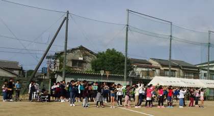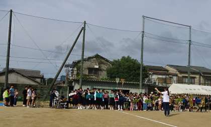 三国地域大運動会の始めに、吹奏楽部と三国小学校金管バンドが合同で演奏しました。合同演奏に向けて、合同練習もしてきました。地域の方々に大きな拍手をいただきました。