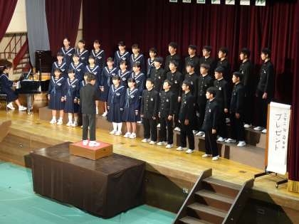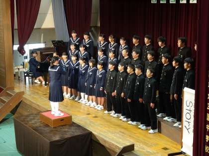 3年生は、1・2年よりも長い自由曲を短い間に覚えてしっかり歌っていました。男声・女声それぞれの美しさもよく出ていました。