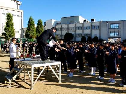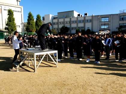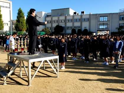 先週は合唱コンクール、文化祭が行われました。各学年学級また生徒一人ひとりが力を出し取り組んで素晴らしい行事となりました。校長先生より今回取り組んでことを、これからの学校生活に活かしていくようにとお話がありました。