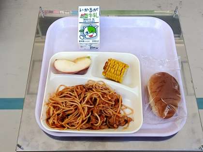 今日の給食の献立は、「きのこのスパゲッティ」です。