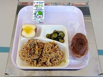 今日の給食の献立は、「オイスター焼きそば」です。