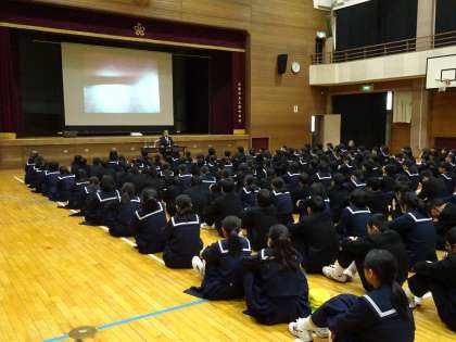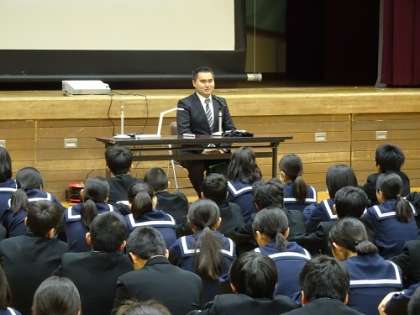 講師として濱崎雄三さんをお招きして、お話を聞きました。小・中学校は視覚支援学校に通学し、高校から府立柴島高校に進まれた濱崎さんの体験にもとづく講話を通して、障がい者への正しい理解を深めることができたと思います。