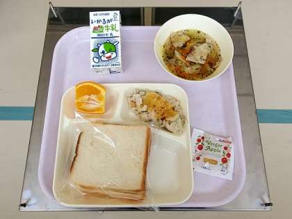 綿実油を熱し、下味をつけた鶏肉を炒めます。次にたまねぎを炒め、マッシュルーム、押麦、湯を加えて煮ます。煮上がれば、塩、こしょうで味つけし、バター、からいりした小麦粉、牛乳を加えてミニバットに入れ、混ぜ合わせた粉末チーズ、パン粉をふり、焼き物機で15分間焼いて出来上がりです。