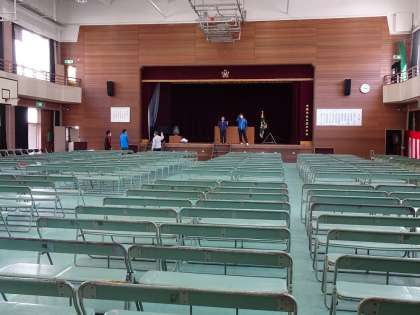 明日の卒業式に向けて、三国中学校の教職員全員が分担し、準備や清掃をしました。感染防止のため様々な制約がありますが、その中でベストな卒業式にしてほしいと願っています。