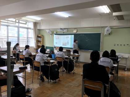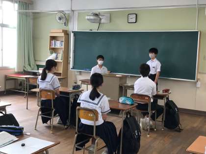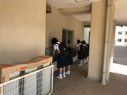 今日は2・3年登校日。天気も良く、午前中は涼しい気候で過ごしやすかったようで す。今日から教室に入る前の手洗いに変わっています。