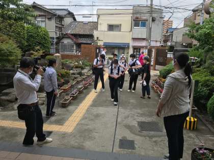 上段:写真屋さんが卒業アルバム用のスナップ写真の撮影です。