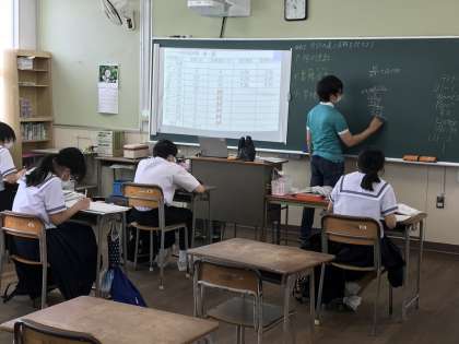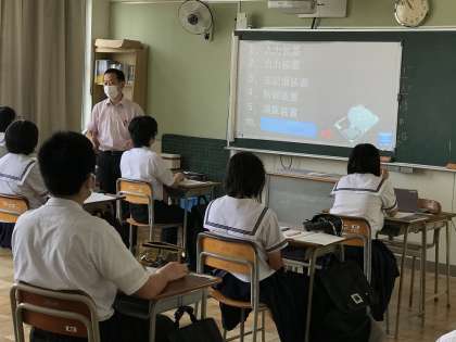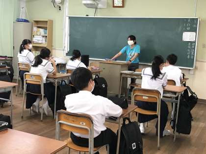 上段:1年体育 隣の体育は教室で集団行動の基礎をしていました。