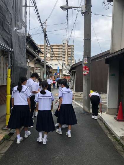 6月30日(火)と7月1日(水)の朝、生徒会と美化委員会合同で、学校周辺の清掃をしました。路上に落ちているゴミを集めました。毎年クリーン運動をしていますが、年々区画整理の影響で空き地が目立って来ました。