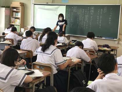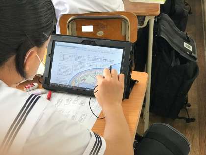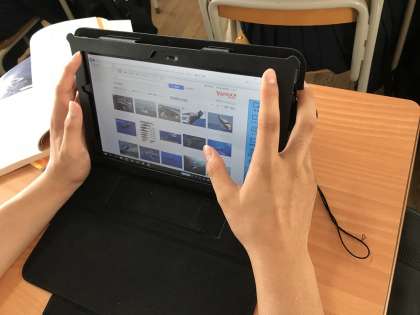 タブレットを使って、「くじらの飲み水」に関連のある図や動画を調べていました。
