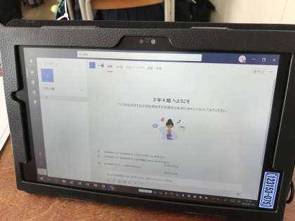 2年生は、技術の時間に「Teams」に登録して、他の時間に「Teams」で担任の先生との双方向の通信の練習をしています。今日の4時間目の2年4組は通信環境の状況がよくなく、サインインまでいくのに時間がかかりましたが、何とかできたようです。