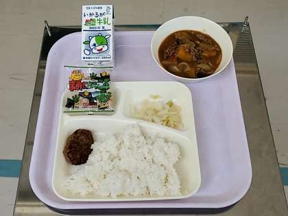 今日の給食の献立は「夏野菜のカレーライス」です。