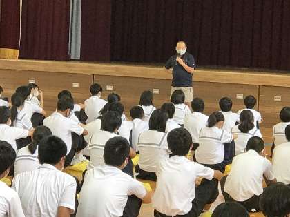 午前中2時間の授業の後、大清掃と体育館での事前指導を行いました。毎日使っている教室などをきれいに掃除し、短くも充実した夏休みに向けての全体指導がありました。