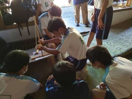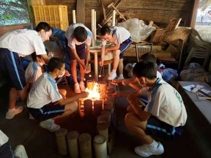 探検を終えた人からマシュマロ焼きの体験をしています。