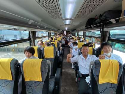 バスに乗車し、新幹線の岐阜羽島駅に向かっています。