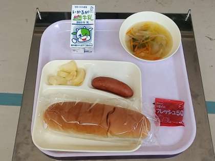 今日の給食の献立は「フランクフルト」です。