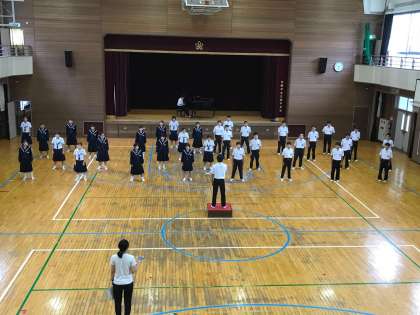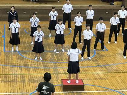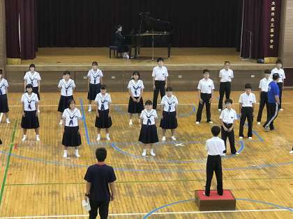 今日の6限目2年生の合唱コンクールリハーサルが行われました。全員がマウスシールドを着用して、歌ってみました。コロナウイルス感染症対策で生徒間の距離などで試行錯誤が続きますが、本番に向けて、工夫していきたいと思います。