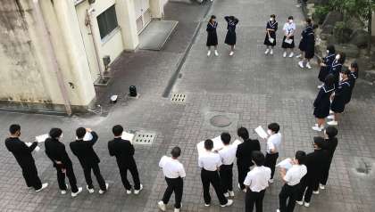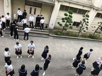 今年は例年とは異なった形で合唱コンクールが行われますが、3年の中庭や教室での始業前の練習が始まっています。練習を重ねることで音も心もきれいなハーモニーをつくっていってほしいと願っています。