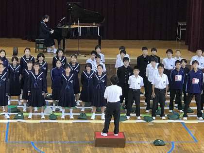 明日、10月22日(木)6限に1年生、あさって、10月23日(金)5限に2年生、6限に3年生の合唱コンクール(撮影・録音)が行われます。