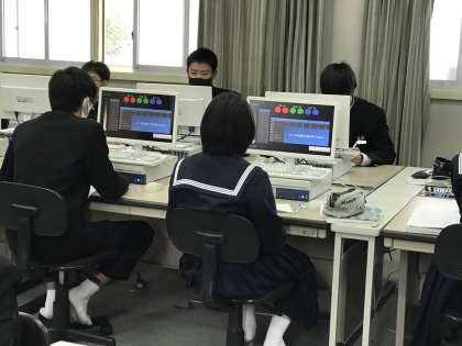 「情報に関する技術・プログラミング」の単元で、「コンピュータの色の表現について理解を深める」学習をしました。色の三原色・光の三原色とコンピュータの色の作成方法を学び、自分で様々な色を作ってみました。同じ「茶色」でも人によって色の感じ方が違うことを確認しました。