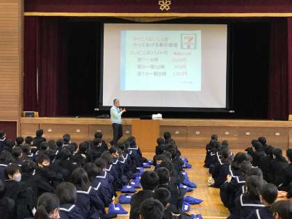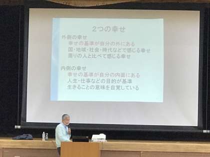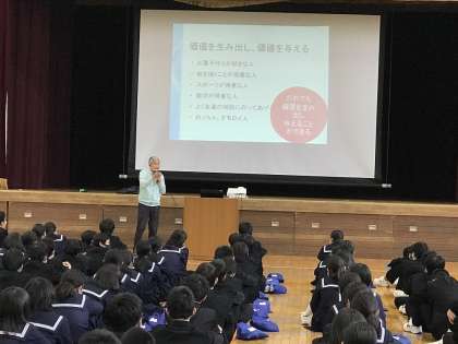 2年生は、今日の4時間目、ヒューマンキャンパスの川島先生に進路講話をしていただきました。これからの進路に向けて、働くことの意味や幸せとは何かなど、深く掘り下げながら、とてもわかりやすくお話していただきました。