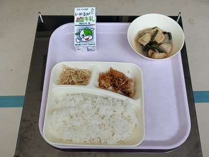 今日の給食の献立は「あげどりのねぎだれかけ」「含め煮」です。