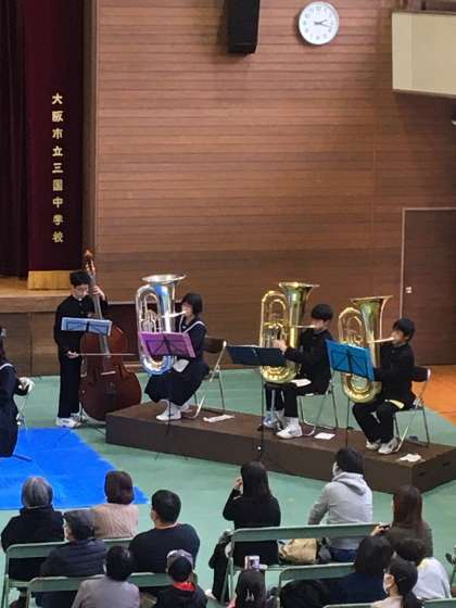コンクールや地域での演奏もコロナウイルス感染症の影響で中止になった三年生にとって貴重な発表の場になりました。保護者の前で、9曲をしっかり演奏しました。年度末の恒例の「なないろコンサート」も無事開催されることを願っています。