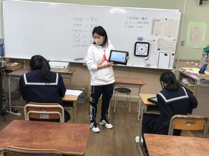 英語「感情カードを作ろう」の授業をしました。感情を表す英単語の意味を確認した後、タブレットでピクチャーキッズを使って、自分の選んだ感情にあった画像を作成しました。今回作った画像は印刷し、加工して「感情カード」にします。