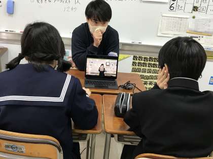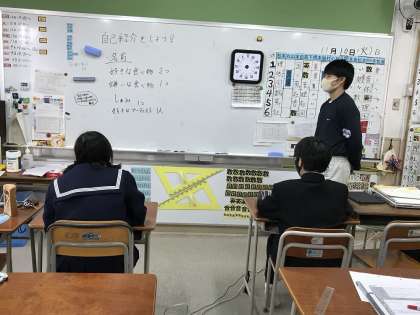 SST(ソーシャルスキル・トレーニング)として、「自己紹介をしよう」の学習をしました。自己紹介の内容を書き出しながら、紹介文にまとめました。そして、前で自己紹介しているところを先生にタブレットで撮ってもらって、その画像を見て、良かったところや良くなかったところを書いて確認しました。