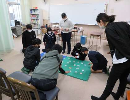 三国小学校と西三国小学校の6年生の児童と保護者の方や先生に来ていただき、6時間目の授業参観をしてから、「カルタ取り」を子どもたちみんなで楽しみました