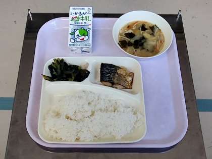 今日の給食の献立は、「さばのみぞれかけ」「こまつなの煮びたし」