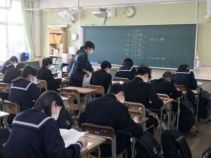 今日は1時間目から5時間目までチャレンジ(プラス)テストでした。5教科の問題に真剣に取り組んでいました。テストをやったらおしまいではなく、今回のテストでわかった課題を早いうちに解消するようにしましょう!