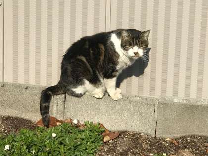 正門のところにはいつもの侵入者。「学校を汚さないでね。」