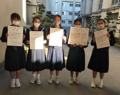また、1月16日に行われた大阪市中学校体育連盟主催駅伝競走大会で団体5位、2区区間賞の成績をあげた陸上競技部の女子が表彰されました。