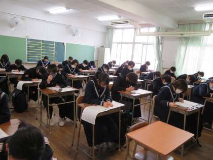漢字検定に向けて、自分の受検する級を決めて、練習してきました。一生懸命答案に向かっていました。合格を祈っています。