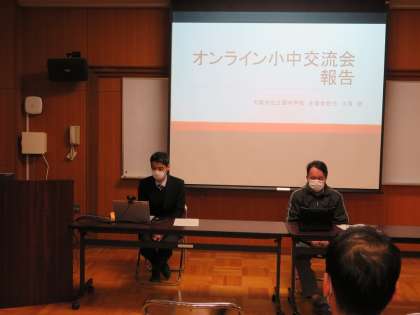 ICTを活用した三国中学校の1年間の取り組みの実践報告会をオンラインで行いました。今回は、大阪市以外の方にも参加していただいたので、「ZOOM」を使ったWeb会議システムによるオンライン研修会としました。ICT支援員の方に前日と当日に入っていただき支援していただきました。