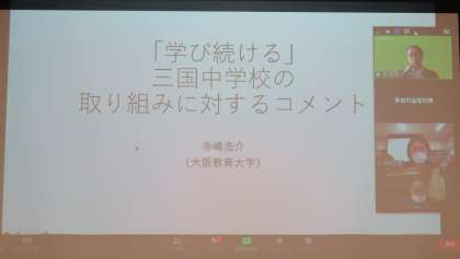「行事関係」と「教科」の2つの分科会に分かれて、発表と話し合いを行い、最後に大阪教育大学教職大学院の寺嶋浩介先生にまとめのご講話をしていただきました。