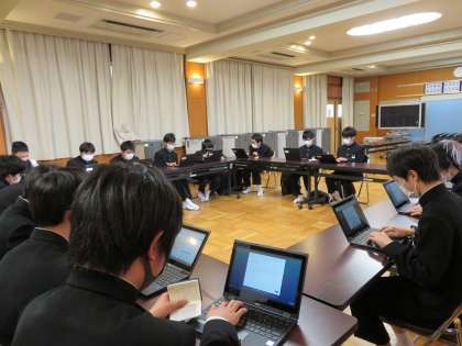 放課後、パソコン部の生徒が、新端末のパソコン(クロムブック)を試しに使いました。クロムブックを熱心にさわって練習していたので、教室でも他の生徒に使い方を教えてくれそうです。