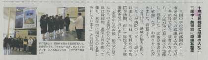 下段:「十三市民病院に感謝の大だこ 三国中・美術部に感謝状贈呈」