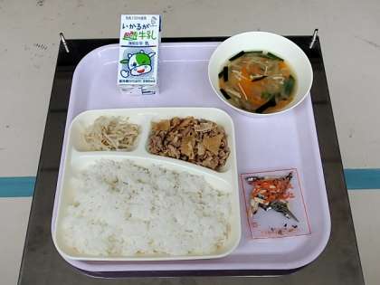 今日の給食の献立は、「豚肉のコチジャンいため」です。