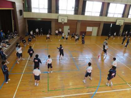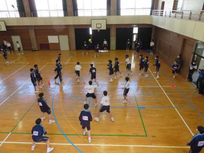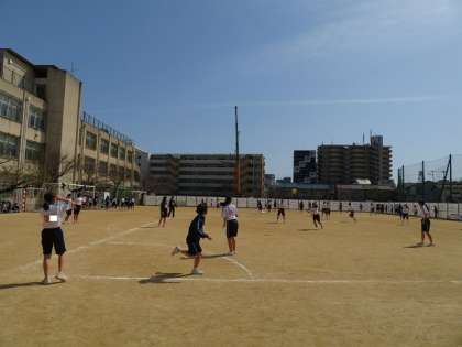 男子は体育館でドッジボール、女子は運動場でキックベースボールをしました。天候もよく、あたたかい日ざしの下で楽しく体を動かしました。