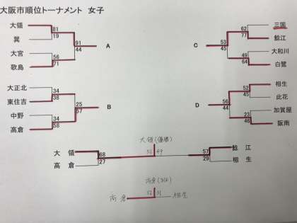 3月20日(土)相生中学校、3月21日(日)大宮中学校で行われた「大阪選手権大会 大阪市地区予選(大阪市新人大会順位決定トーナメント)」で、男子バスケットボール部は、準決勝で大和川中に55対52、決勝で中野中に63対49で勝利し、優勝しました。