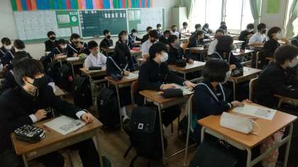 生徒会が作成したDVDをもとに、ケース別にいじめについて考えました。