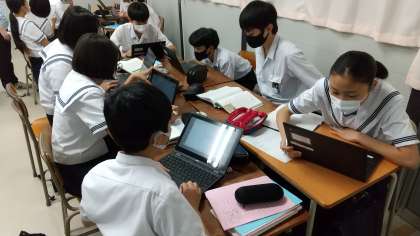 タブレット端末を活用して資料を揃えています。