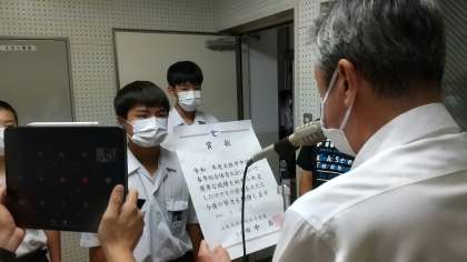 大阪市春季総合体育大会で優勝したサッカー部の表彰伝達を行いました。
