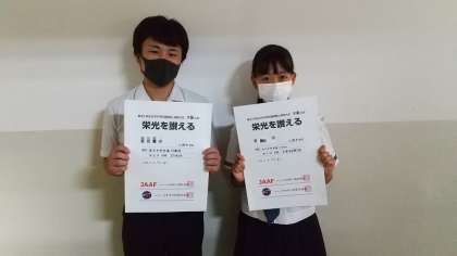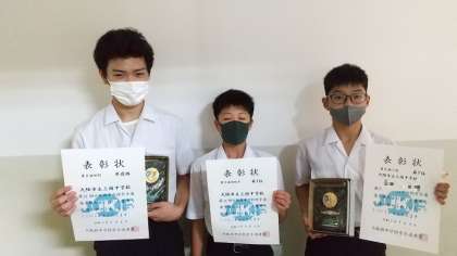陸上競技部と空手の部の表彰伝達がありました。