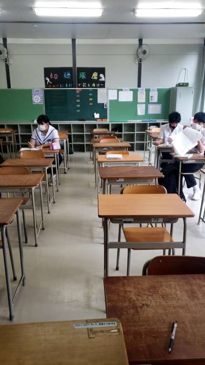 理科では夏休みの課題のわからないところをきいたり、社会では1学期で学習したところの1問1答や昨年度の入試問題をときました。