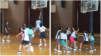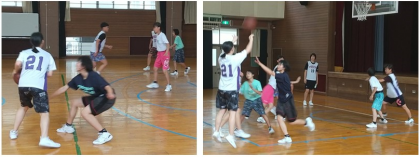 リバウンドを取りに行く前の攻防を課題に取り組んでいます。