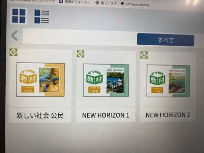 各学年で、1年生:英語、2年生:英語、3年生:公民 のデジタル教科書をクロムブックで見ることができます。(今まで学校番号がまちがっていました)