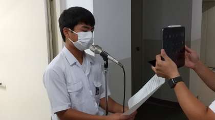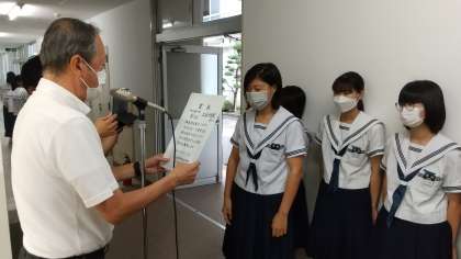 校長先生のお話、女子ソフトテニス部の表彰伝達、選挙管理委員会からのお知らせがありました。