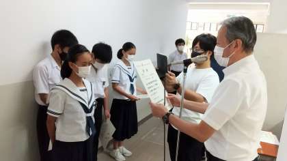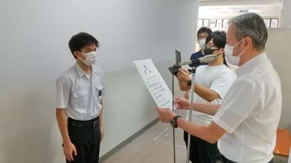 陸上競技部と水泳の表彰伝達をしました。